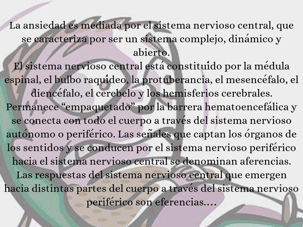 La ansiedad es mediada por el sistema nervioso central, que se caracteriza por ser un sistema complejo, dinámico y abierto.