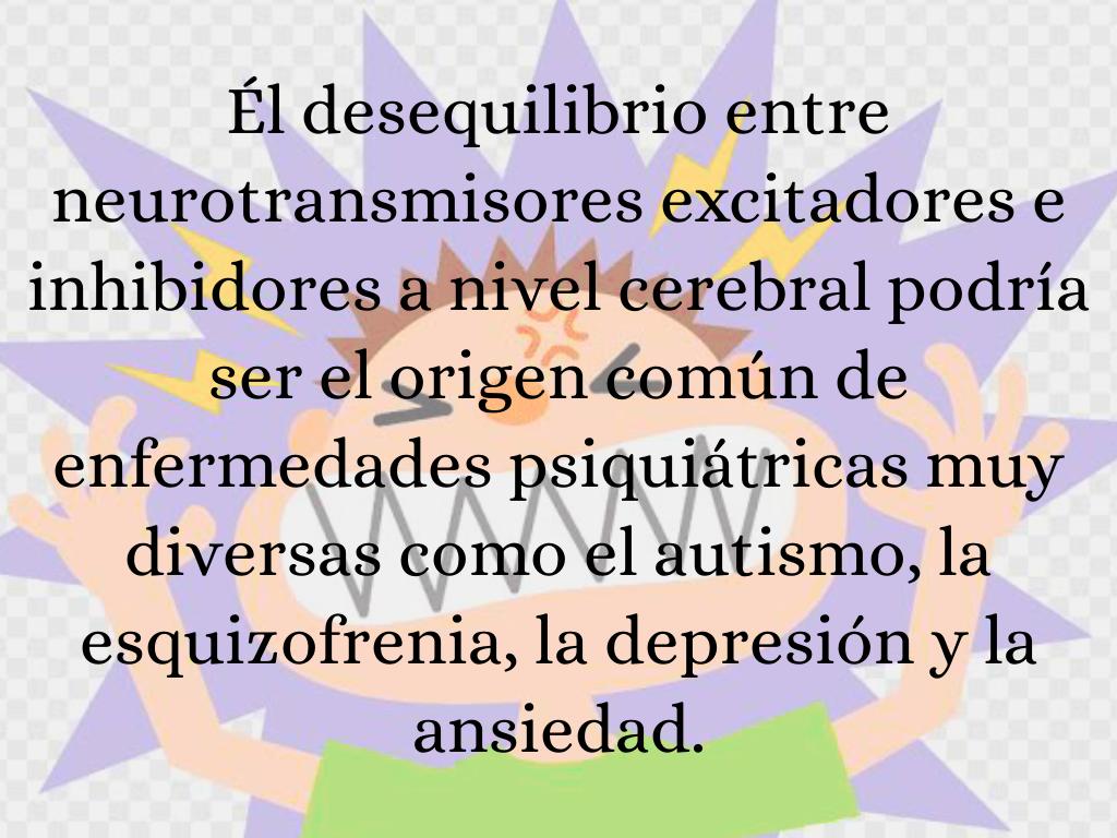 Él desequilibrio entre neurotransmisores excitadores e inhibidores a nivel cerebral podría ser el origen común de enfermedades psiquiátricas muy diversas como el autismo, la esquizofrenia, la depresión y la ansiedad.