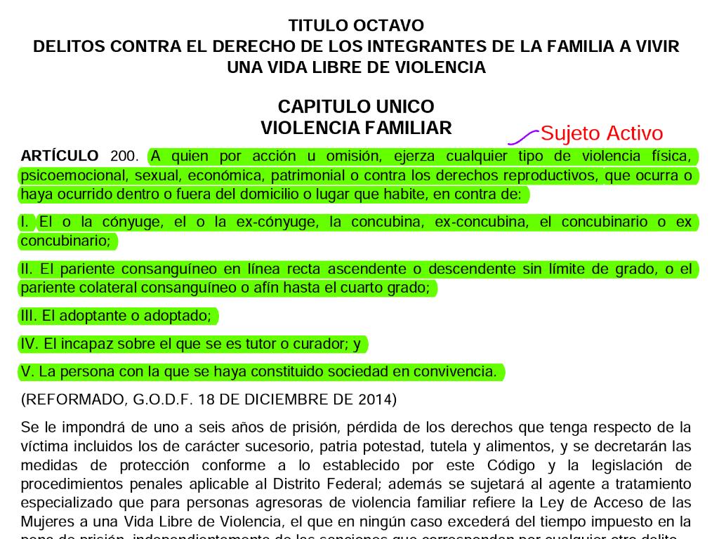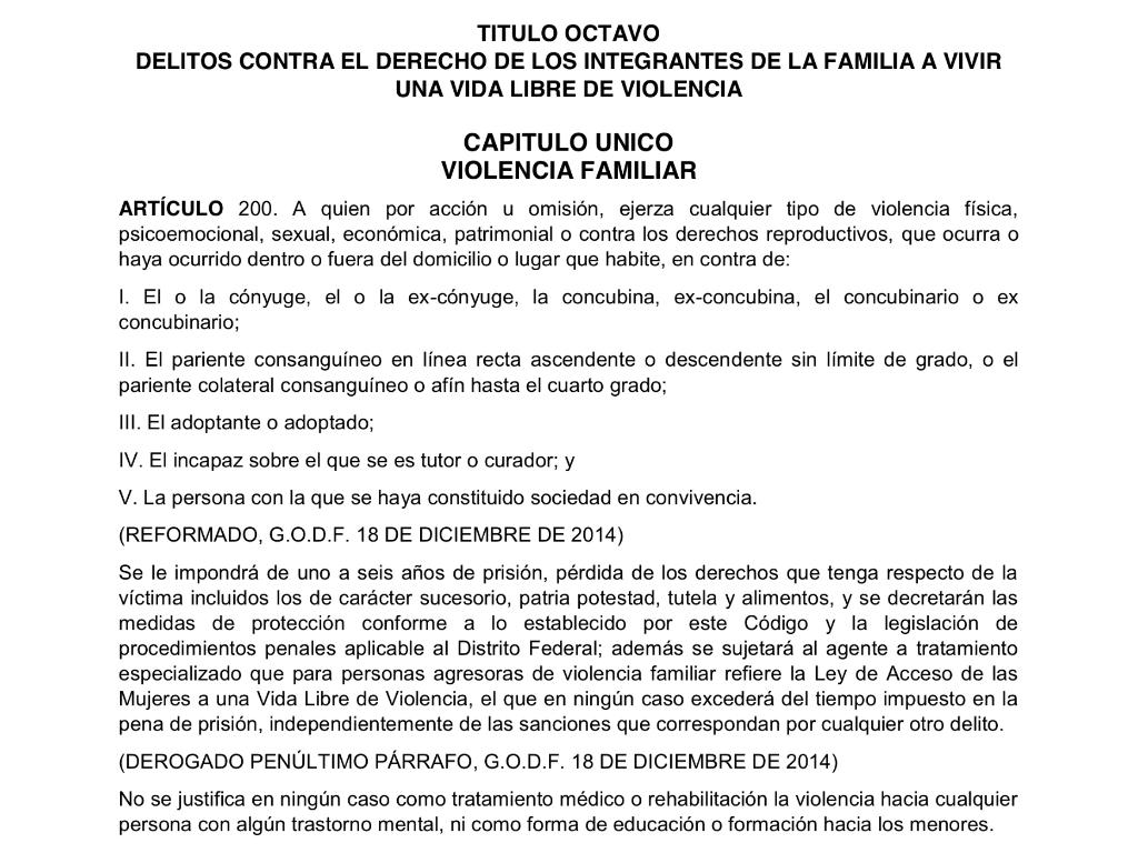 Delitos contra el derecho de los integrantes de la familia a vivir una vida libre de violencia