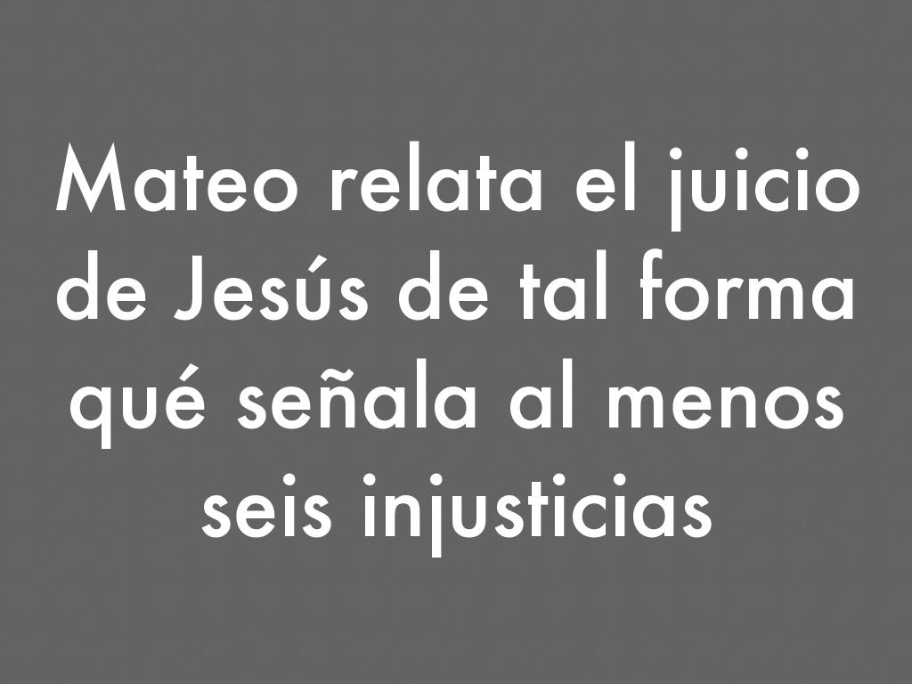 Mateo relata el juicio de Jesús de tal forma qué señala al menos seis injusticias