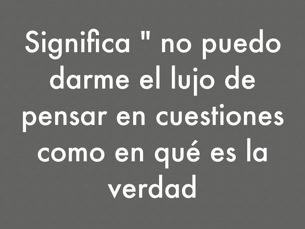 Significa " no puedo darme el lujo de pensar en cuestiones como en qué es la verdad