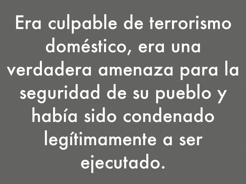 Era culpable de terrorismo doméstico, era una verdadera amenaza para la seguridad de su pueblo y había sido condenado legítimamente a ser ejecutado.