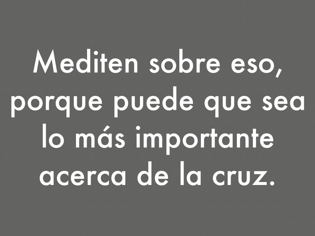Mediten sobre eso, porque puede que sea lo más importante acerca de la cruz.