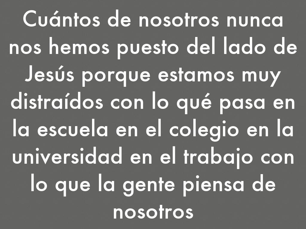 Cuántos de nosotros nunca nos hemos puesto del lado de Jesús porque estamos muy distraídos con lo qué pasa en la escuela en el colegio en la universidad en el trabajo con lo que la gente piensa de nosotros