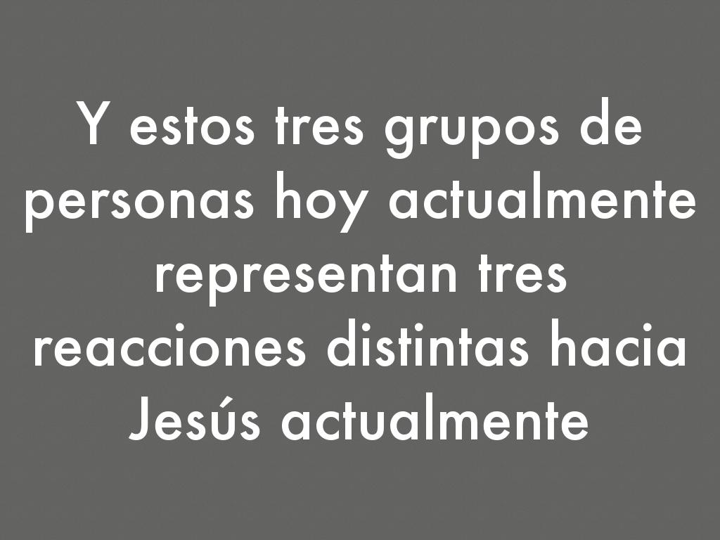 Y estos tres grupos de personas hoy actualmente representan tres reacciones distintas hacia Jesús actualmente