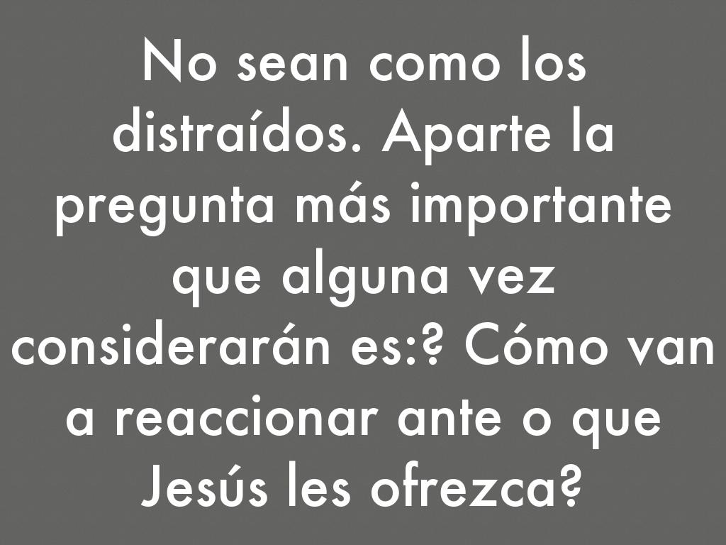 No sean como los distraídos. Aparte la pregunta más importante que alguna vez considerarán es:? Cómo van a reaccionar ante o que Jesús les ofrezca?
