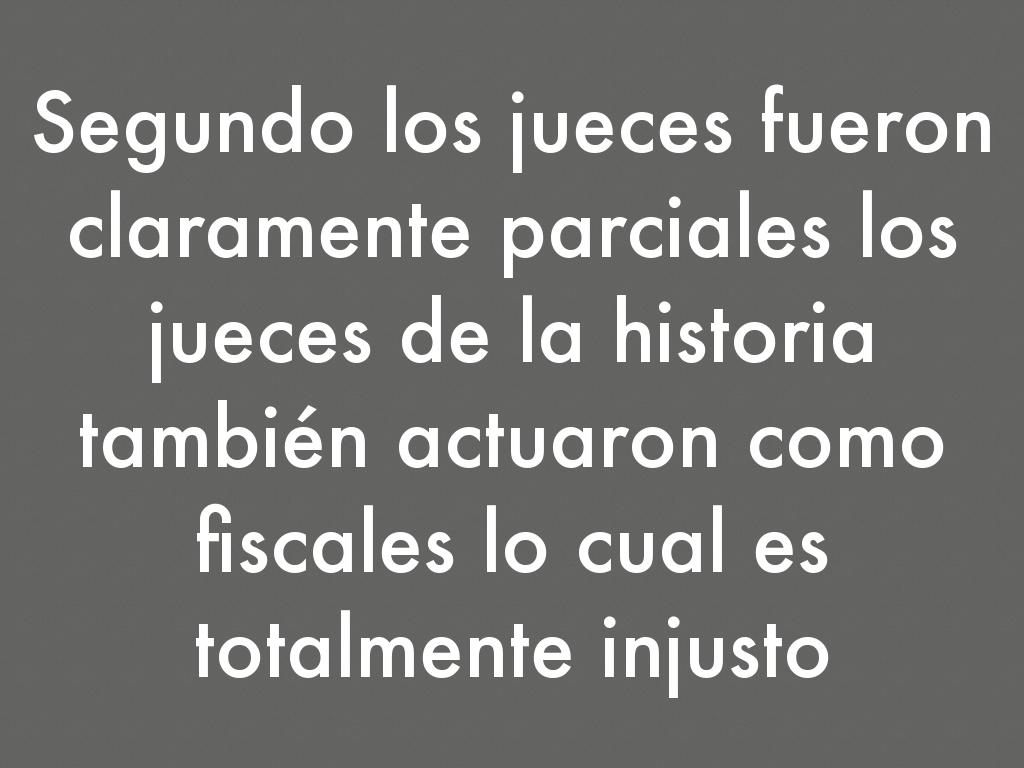 Segundo los jueces fueron claramente parciales los jueces de la historia también actuaron como fiscales lo cual es totalmente injusto