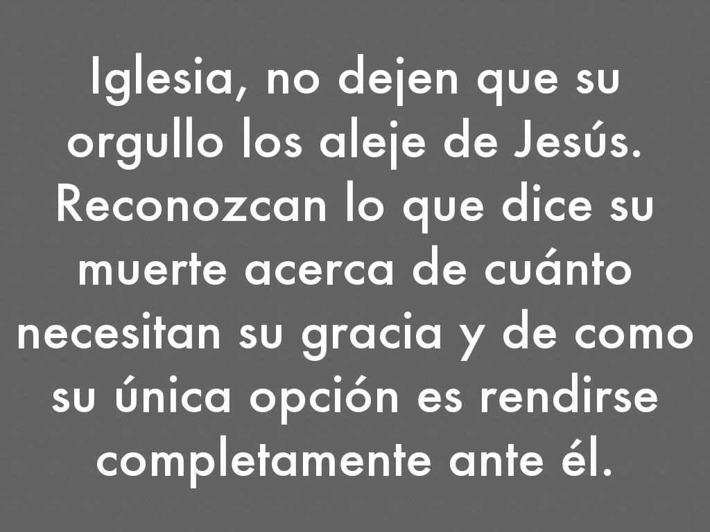 Iglesia, no dejen que su orgullo los aleje de Jesús. Reconozcan lo que dice su muerte acerca de cuánto necesitan su gracia y de como su única opción es rendirse completamente ante él.