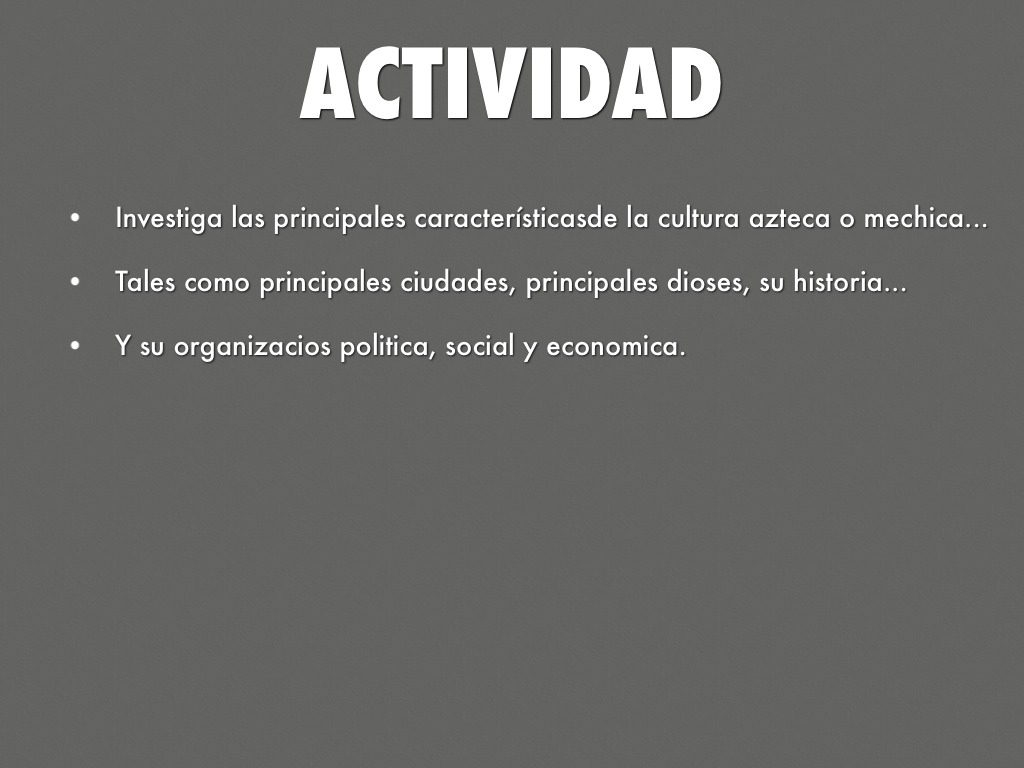 - Investiga las principales característicasde la cultura azteca o mechica...