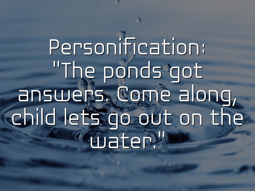 "The ponds got answers. Come along, child lets go out on the water."