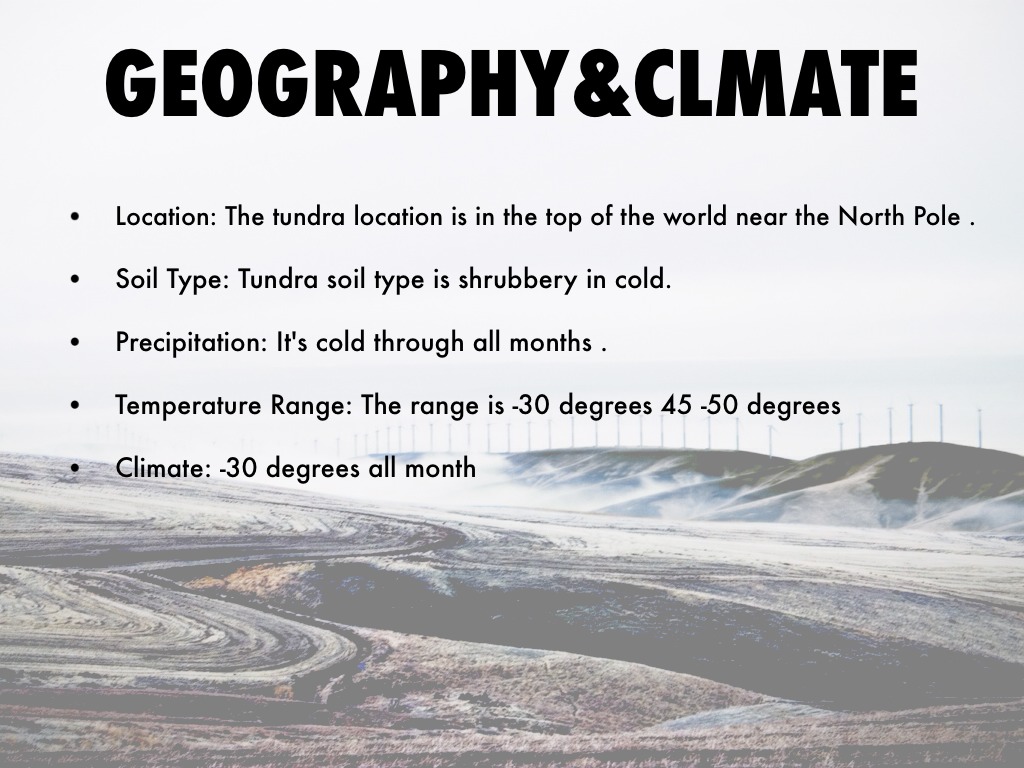 Soil Type: Tundra soil type is shrubbery in cold.