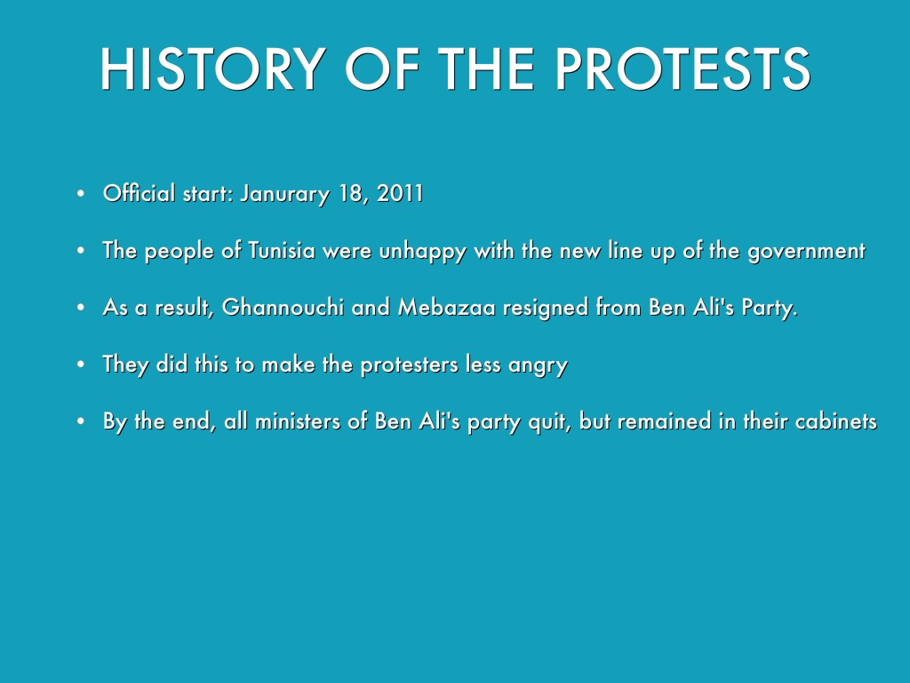 • As a result, Ghannouchi and Mebazaa resigned from Ben Ali's Party.