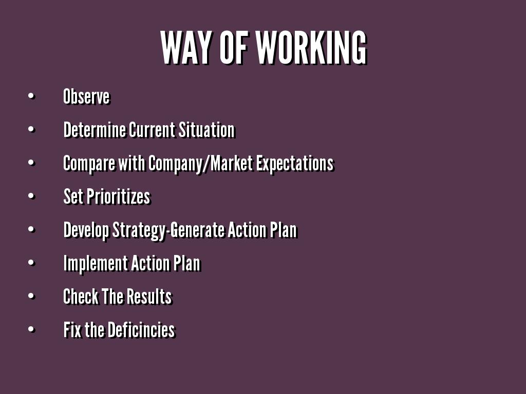 WAY OF WORKING