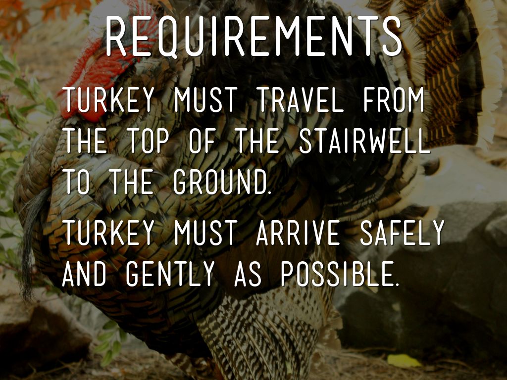 Turkey must travel from the top of the stairwell to the ground.