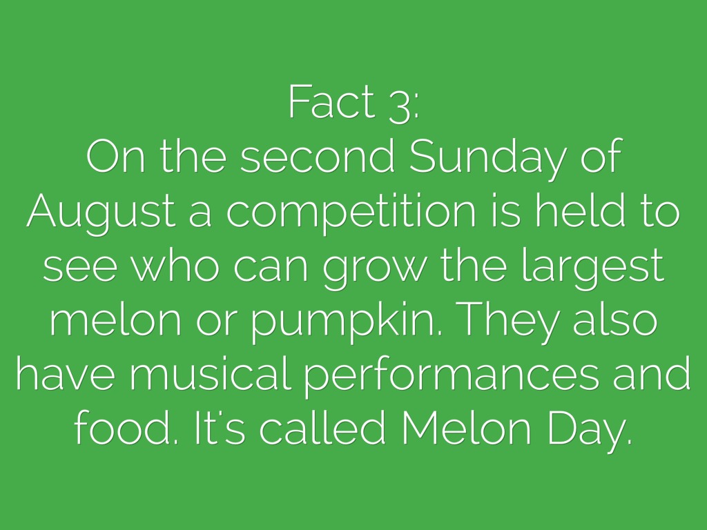 Fact 3: On the second Sunday of August a competition is held to see who can grow the largest melon or pumpkin. They also have musical performances and food. It's called Melon Day.