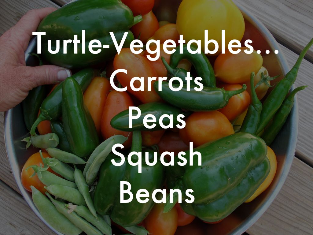 Turtle-Vegetables... Carrots Peas Squash Beans
