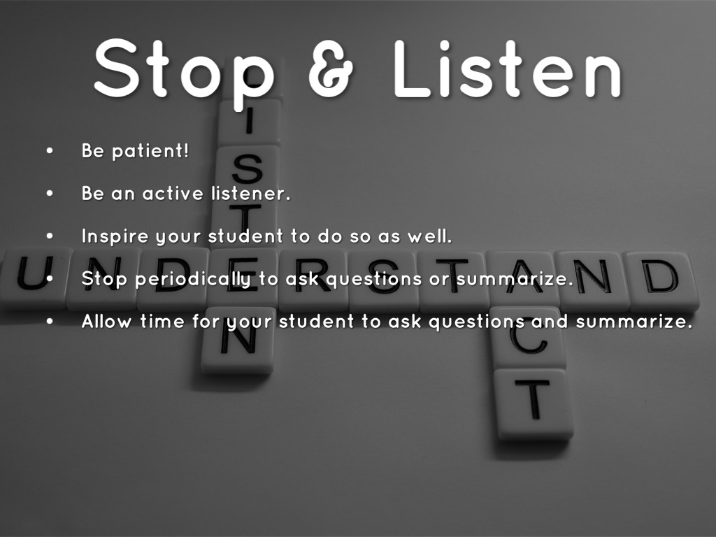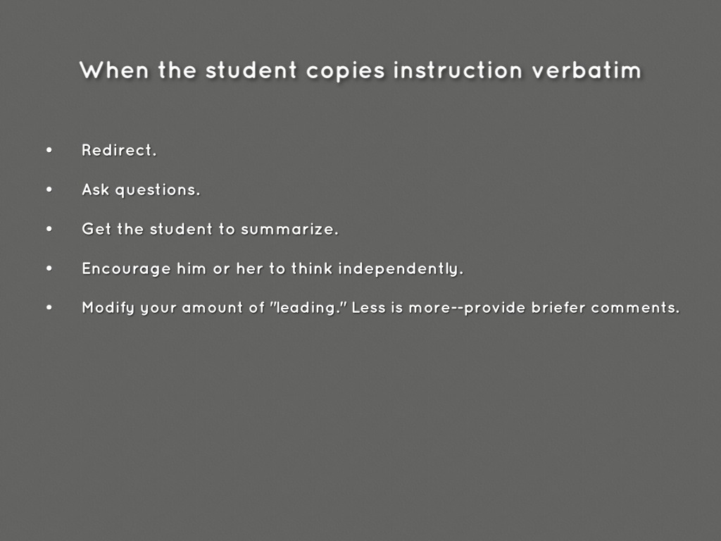 > As tempting as it may be to record these comments and suggestions, allow the student to demonstrate his or her own understanding by writing their paraphrases down.