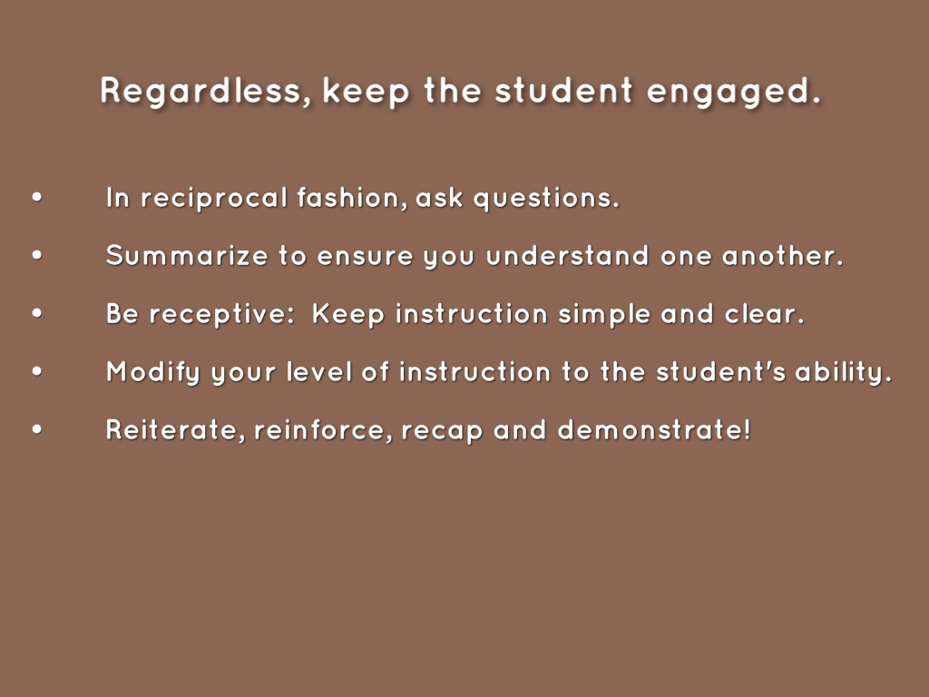 > This also provides an opportune time for the student to ask questions or to clarify.