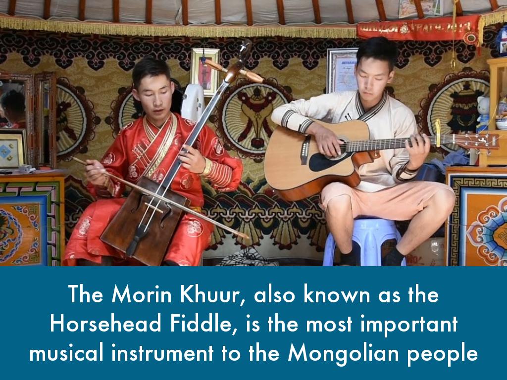 The Morin Khuur, also known as the Horsehead Fiddle, is the most important musical instrument to the Mongolian people