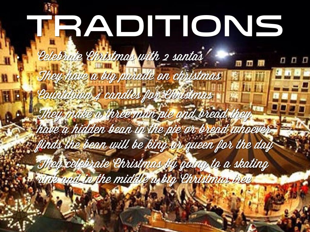 They celebrate Christmas by going to a skating rink and in the middle a big Christmas tree