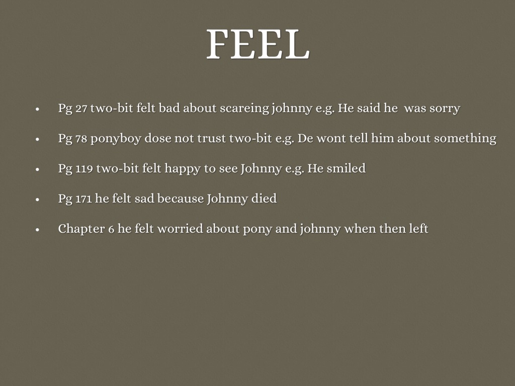Pg 78 ponyboy dose not trust two-bit e.g. De wont tell him about something