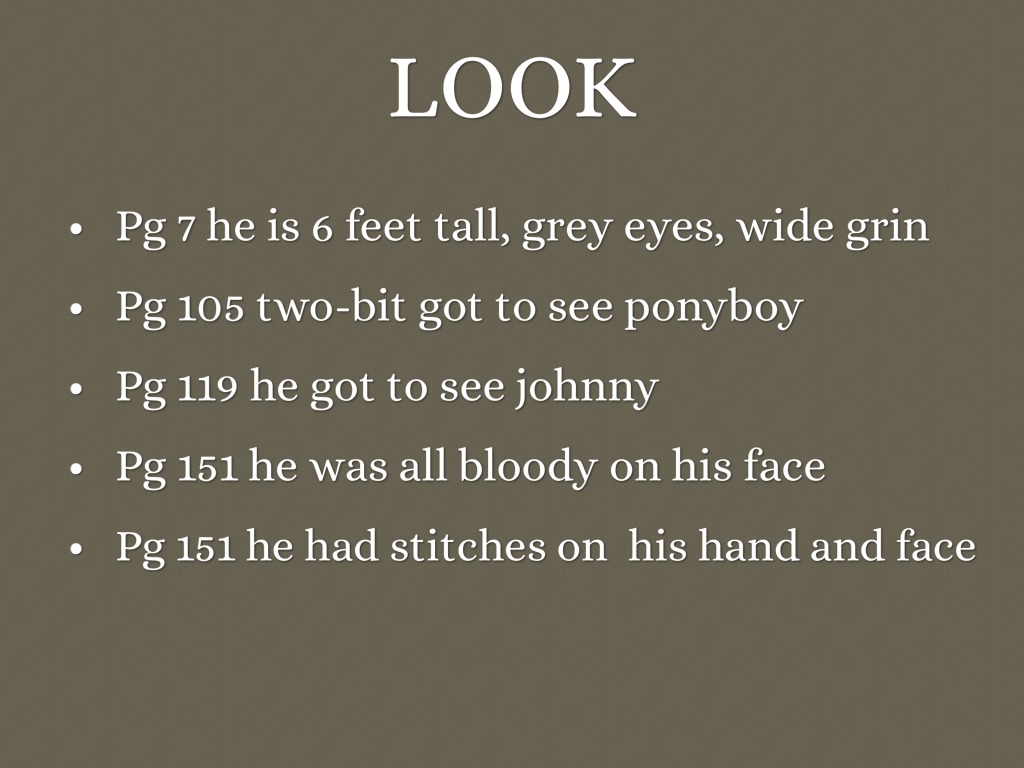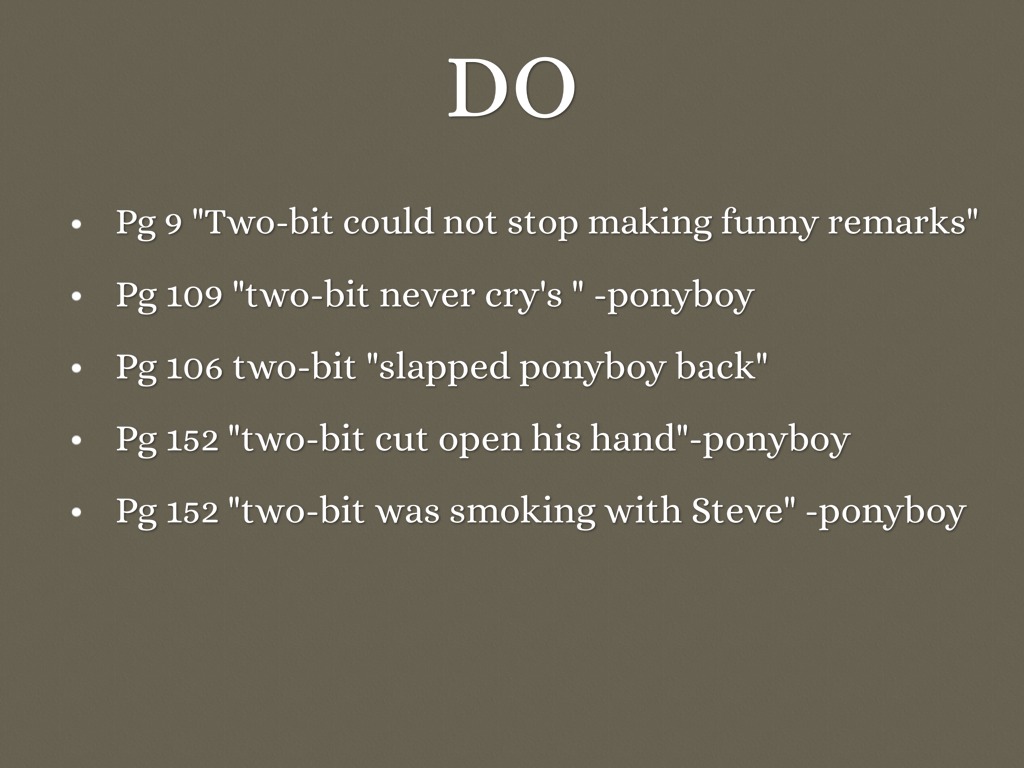 Chapter 10 "two-bit thinks dally was a good guy" e.g. He was a good freind with him