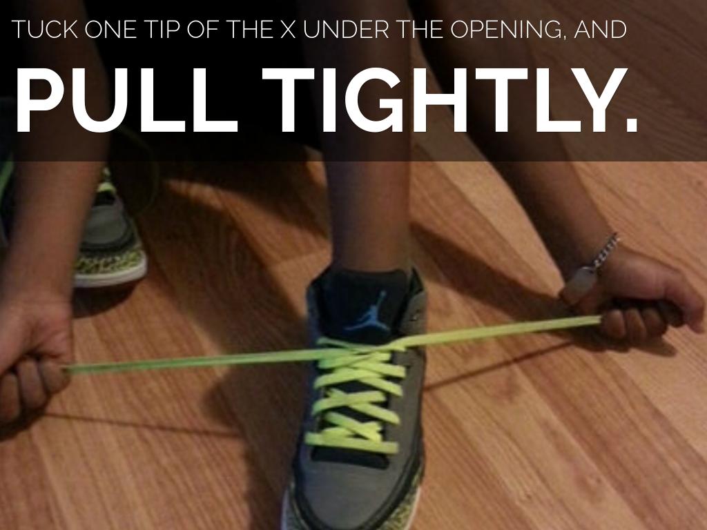 MAKE SURE THERE ARE NO KNOTS IN YOUR SHOE STRINGS.