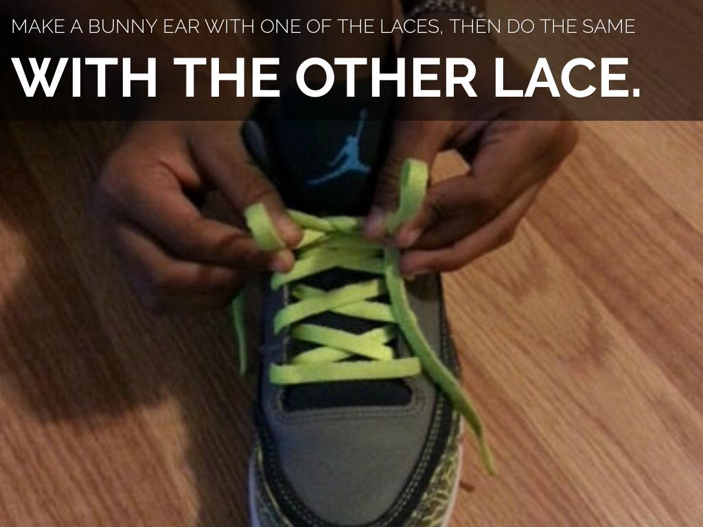 MAKE A BUNNY EAR WITH ONE OF THE LACES, THEN DO THE SAME