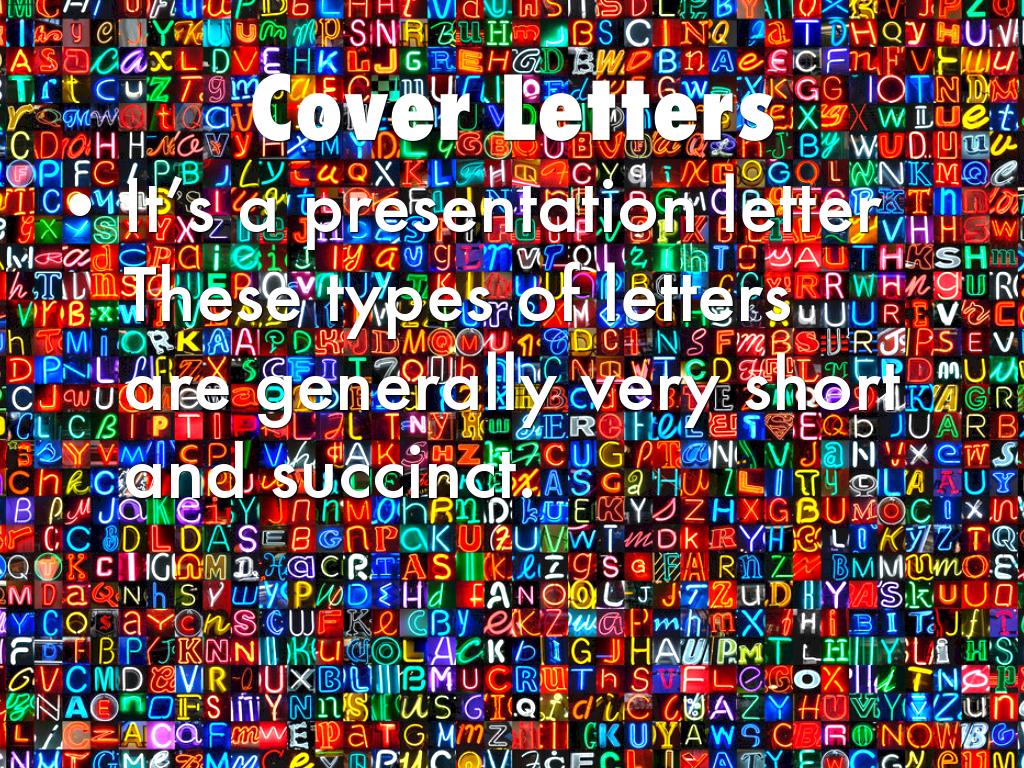 • It’s a presentation letter These types of letters are generally very short and succinct.