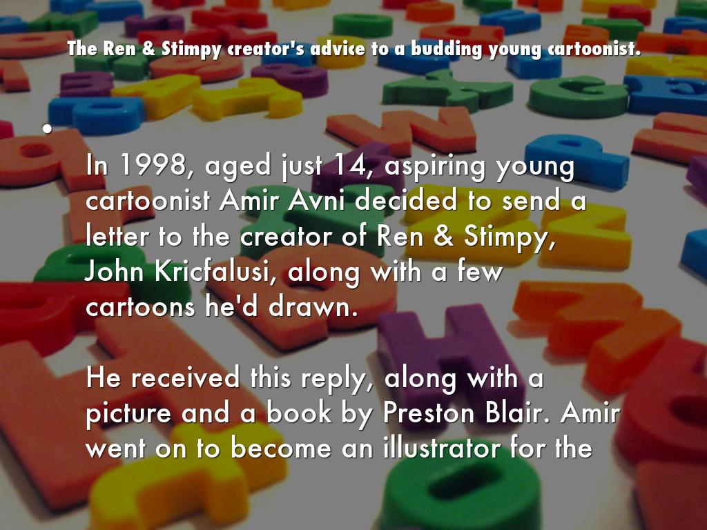 • In 1998, aged just 14, aspiring young cartoonist Amir Avni decided to send a letter to the creator of Ren & Stimpy, John Kricfalusi, along with a few cartoons he'd drawn. He received this reply, along with a picture and a book by Preston Blair. Amir went on to become an illustrator for the Cartoon Network.