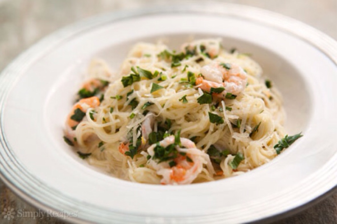 VERY THIN PASTA, PAIRED WITH GARLIC SAUCE & SEAFOOD
