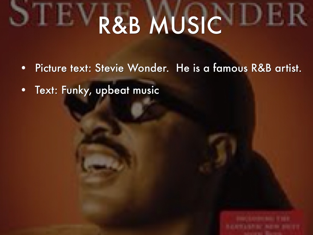 Picture text: Stevie Wonder. He is a famous R&B artist.