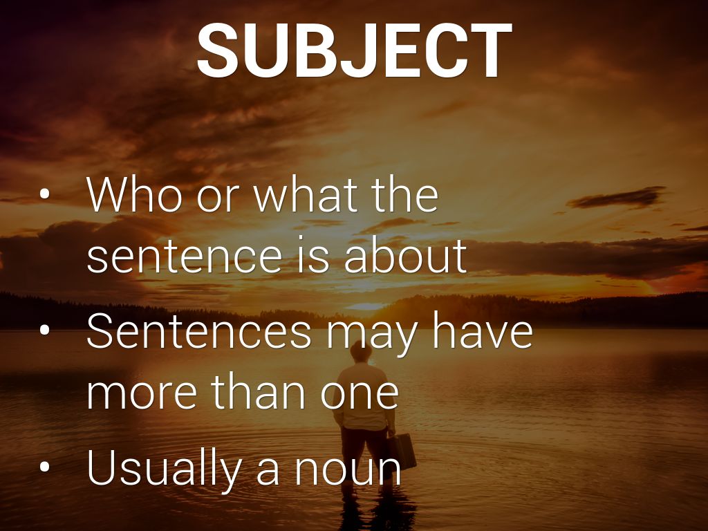 Think of the subject of a painting or a subject in school- it is the focus of the sentence.