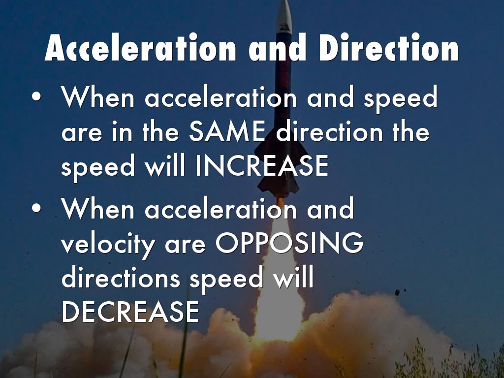 When acceleration and velocity are OPPOSING directions speed will DECREASE
