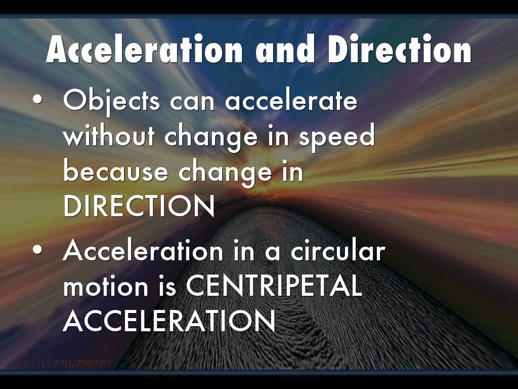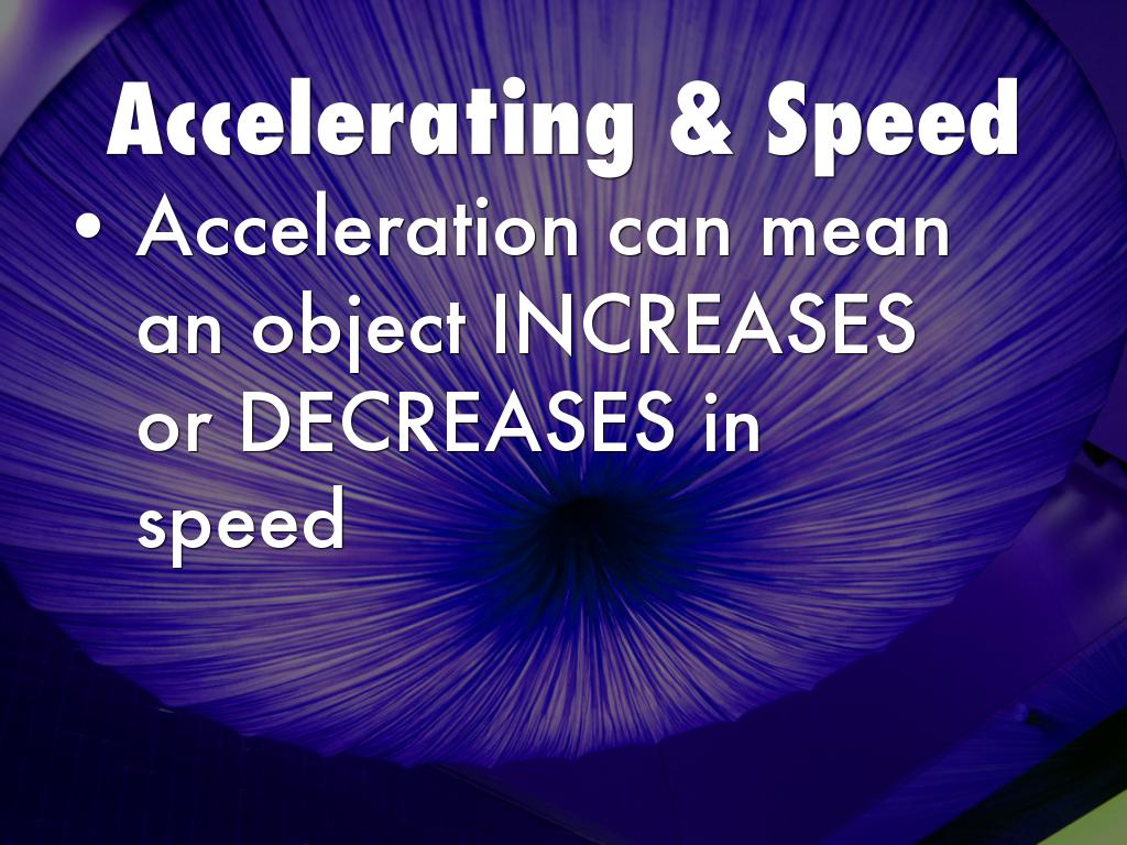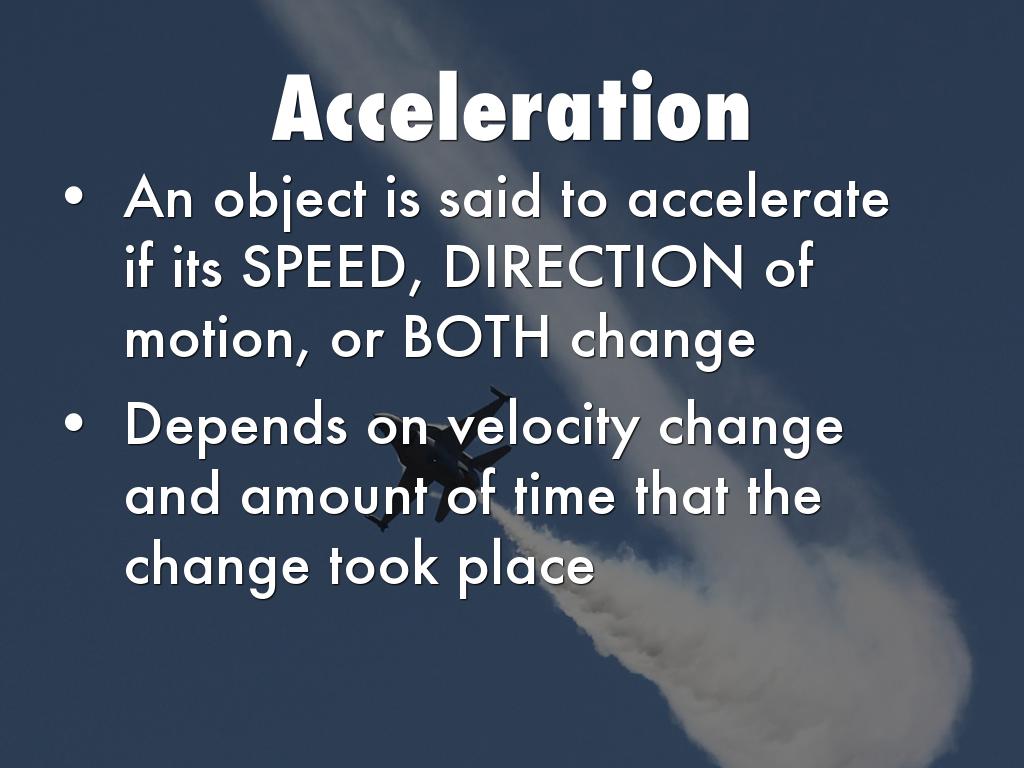 An object is said to accelerate if its SPEED, DIRECTION of motion, or BOTH change