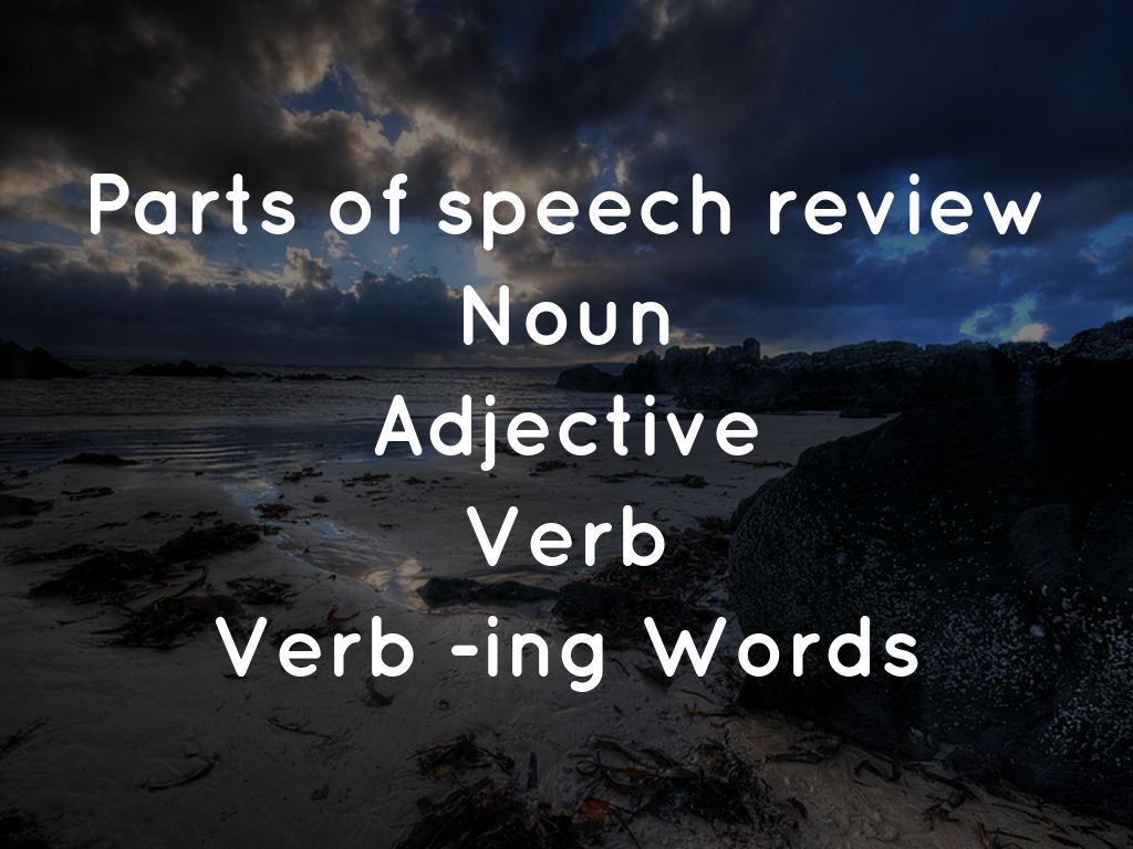 Parts of speech review Noun Adjective Verb Verb -ing Words
