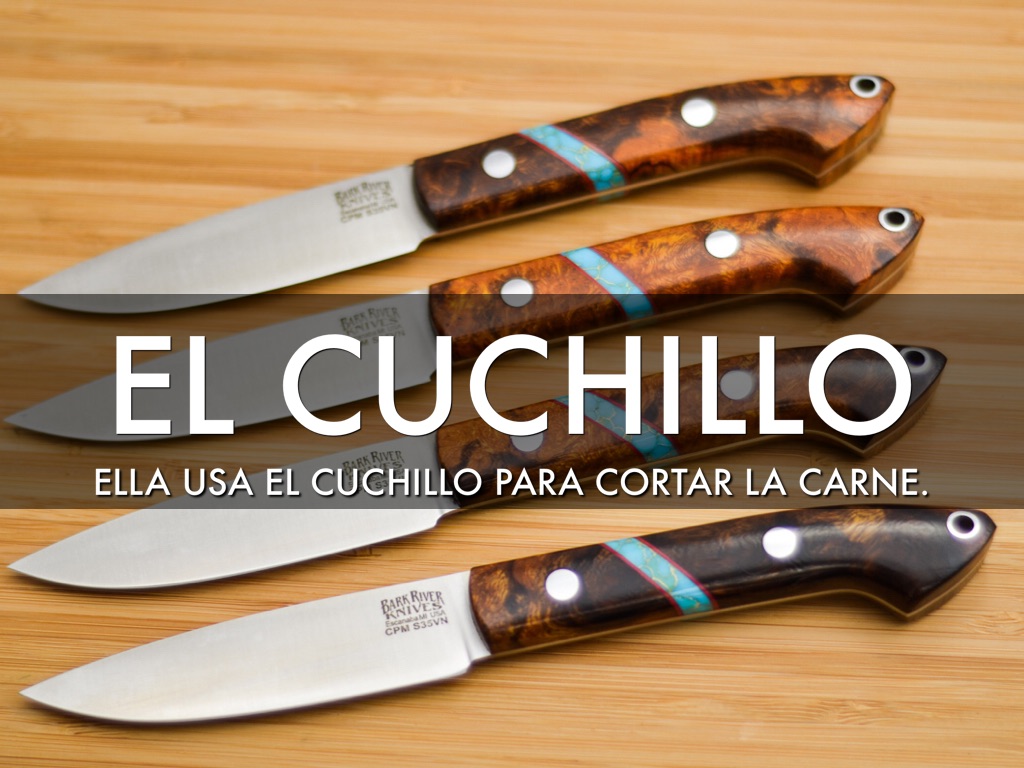ELLA USA EL CUCHILLO PARA CORTAR LA CARNE.