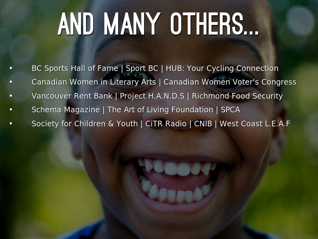 Society for Children & Youth | CiTR Radio | CNIB | West Coast L.E.A.F