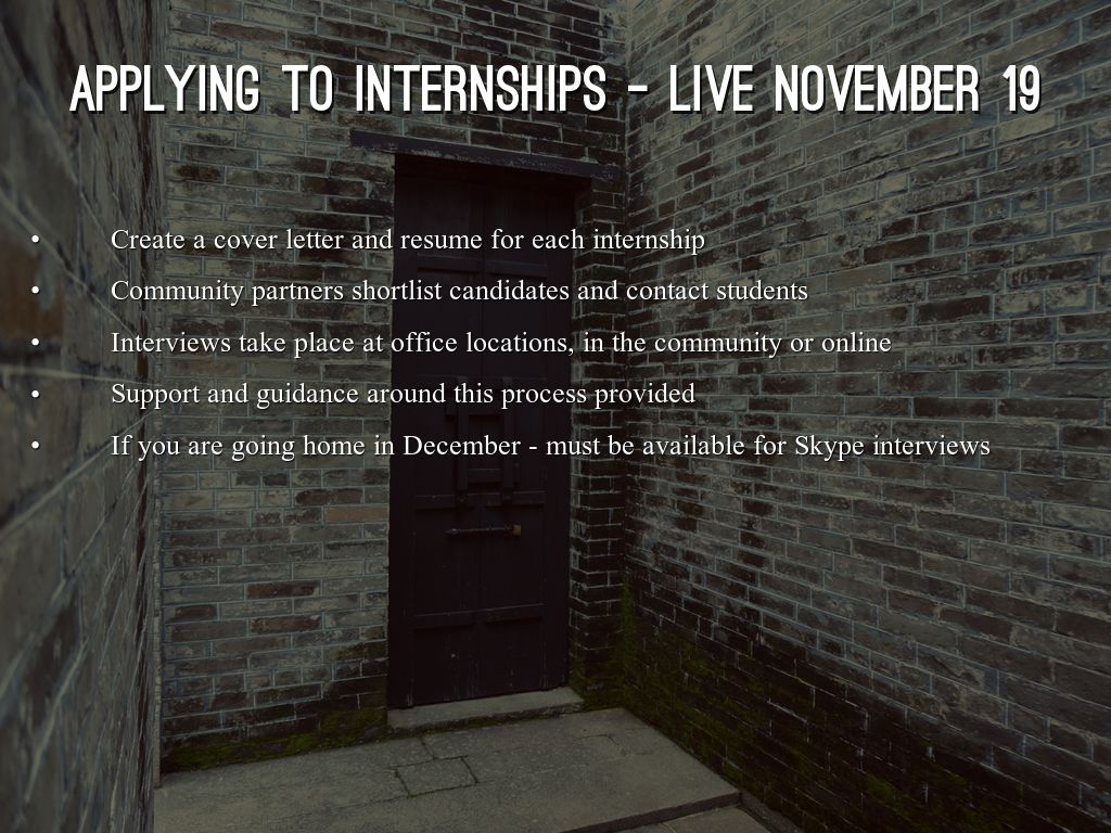APPLYING TO INTERNSHIPS - LIVE NOVEMBER 19