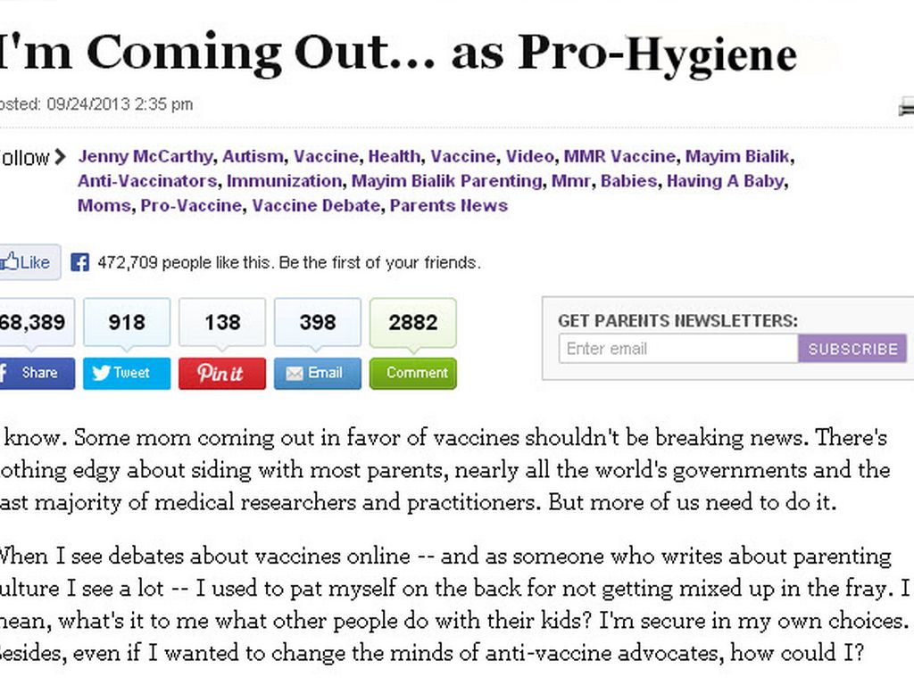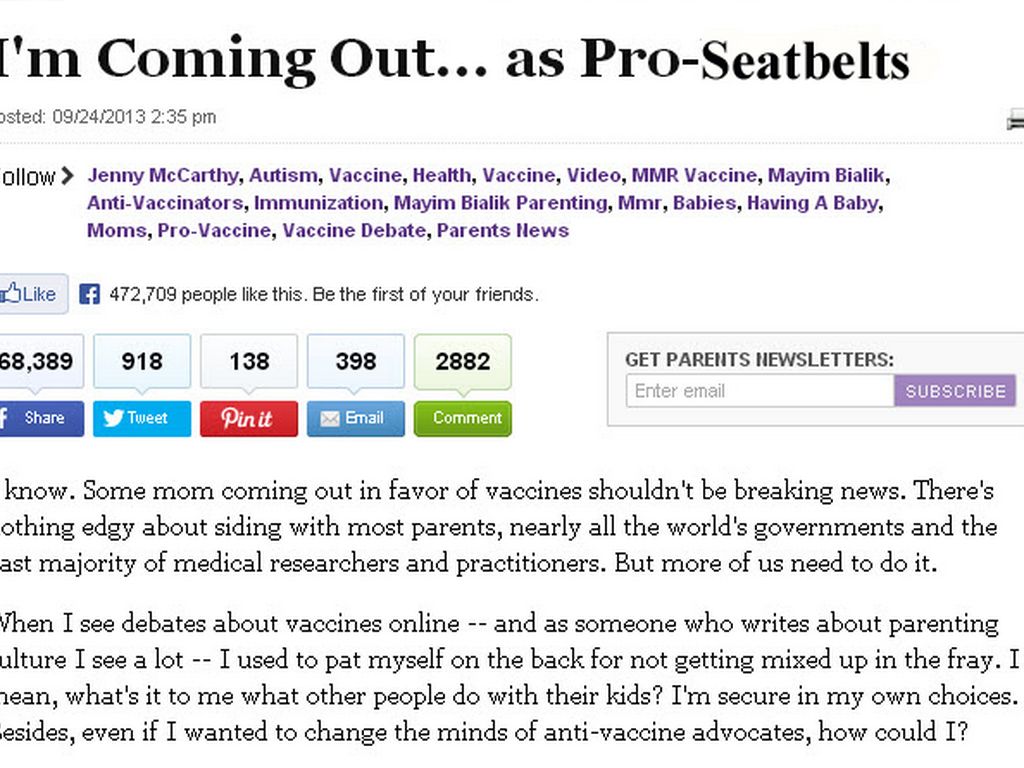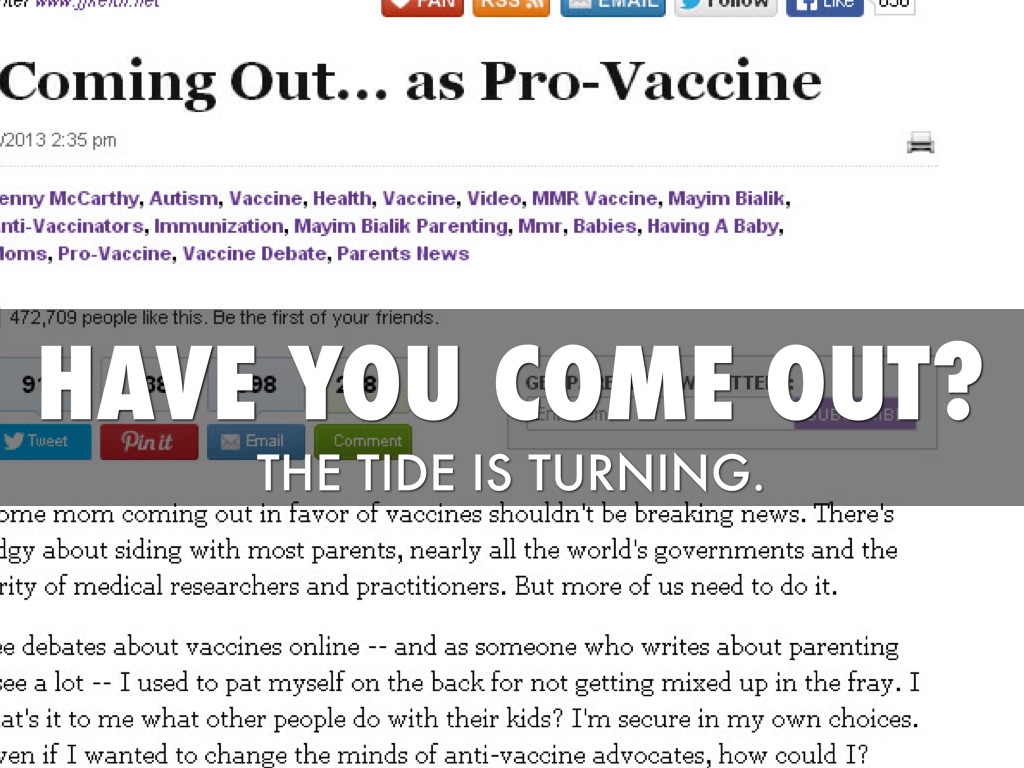 This headline caught my eye because it sums up how absurd the vaccine "debate" has become. It's a ridiculous thing to say. It's like saying "I'm coming out as in support of the most successful health interventions ever." Would you say I'm coming out in support of seatbelts." Or I'm coming out as pro-hygienne" It may seem strange to say that you are "coming out" as pro-vaccine but in some circles this is the case.