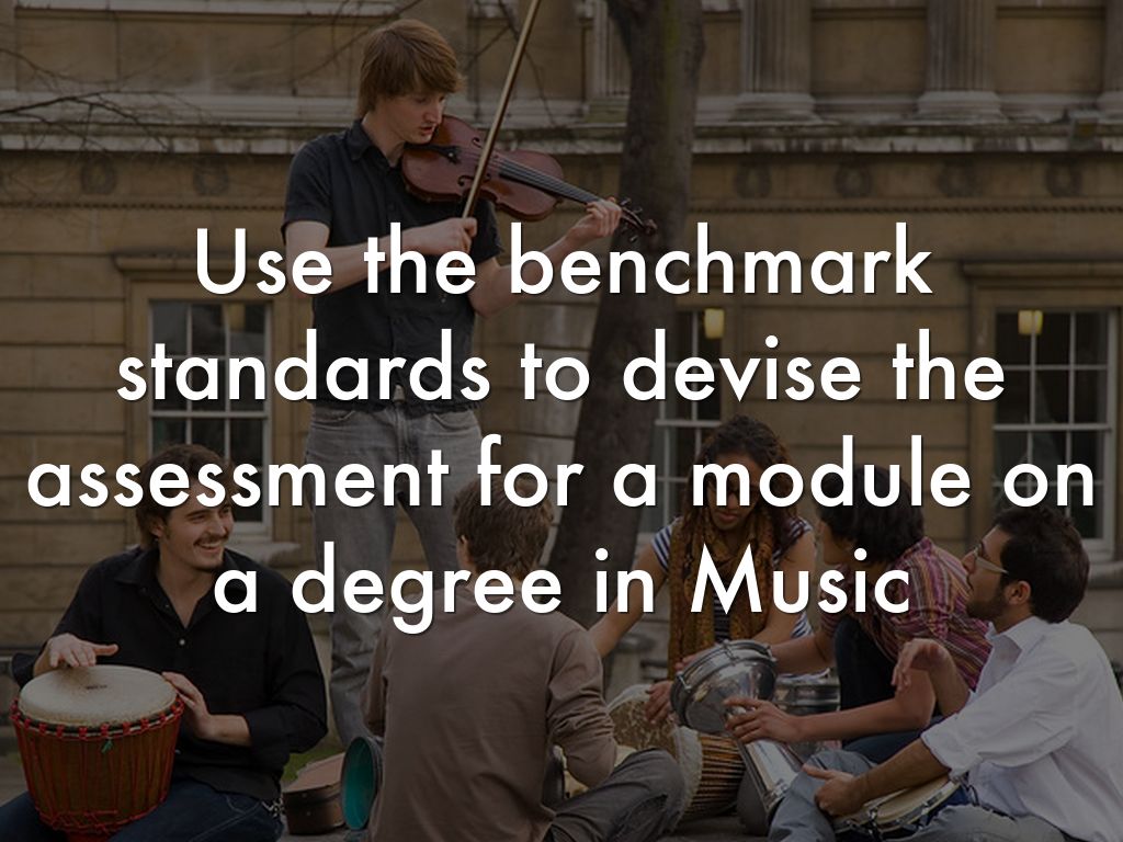 Use the benchmark standards to devise the assessment for a module on a degree in Music