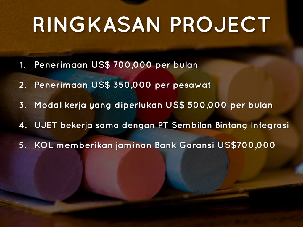 • Modal kerja yang diperlukan US$ 500,000 per bulan