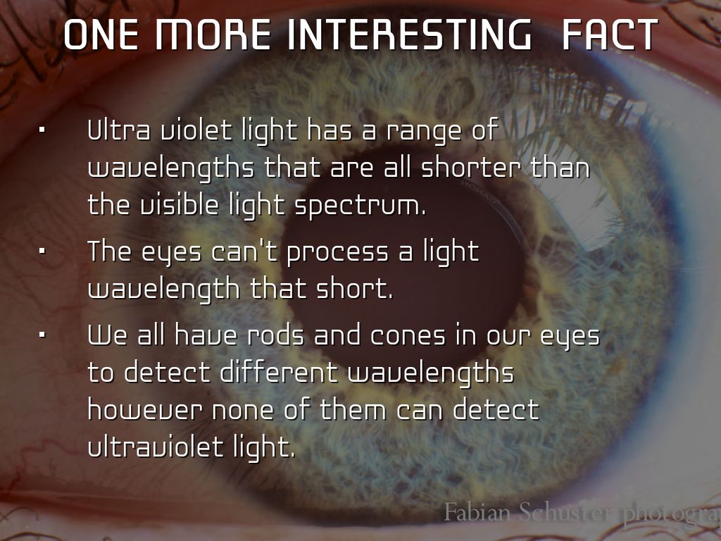 And the human eye can't detect UV Rays because it is emitted at such a high frequency that our eyes can't physically see them.