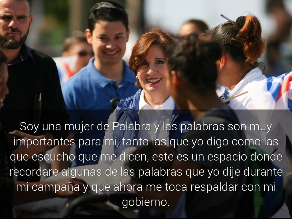 Soy una mujer de Palabra y las palabras son muy importantes para mi, tanto las que yo digo como las que escucho que me dicen, este es un espacio donde recordare algunas de las palabras que yo dije durante mi campaña y que ahora me toca respaldar con mi gobierno.