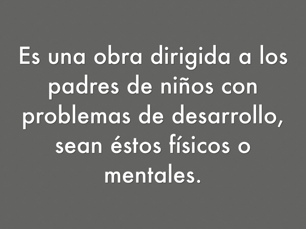 Es una obra dirigida a los padres de niños con problemas de desarrollo, sean éstos físicos o mentales.