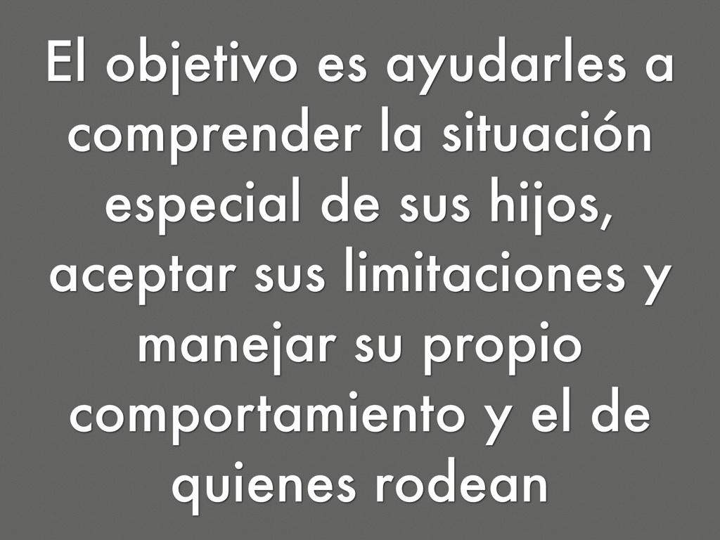 El objetivo es ayudarles a comprender la situación especial de sus hijos, aceptar sus limitaciones y manejar su propio comportamiento y el de quienes rodean