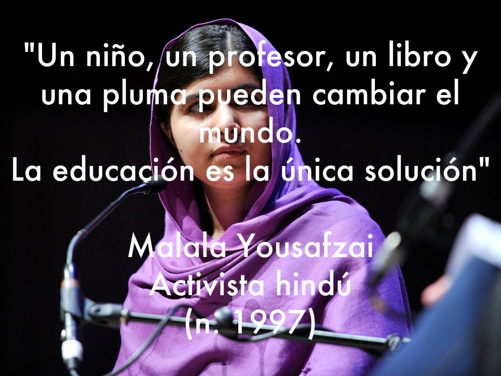 Un niño, un profesor, un libro y una pluma pueden cambiar el mundo Malala Yousafzai Activista hindú Nacida en 1997