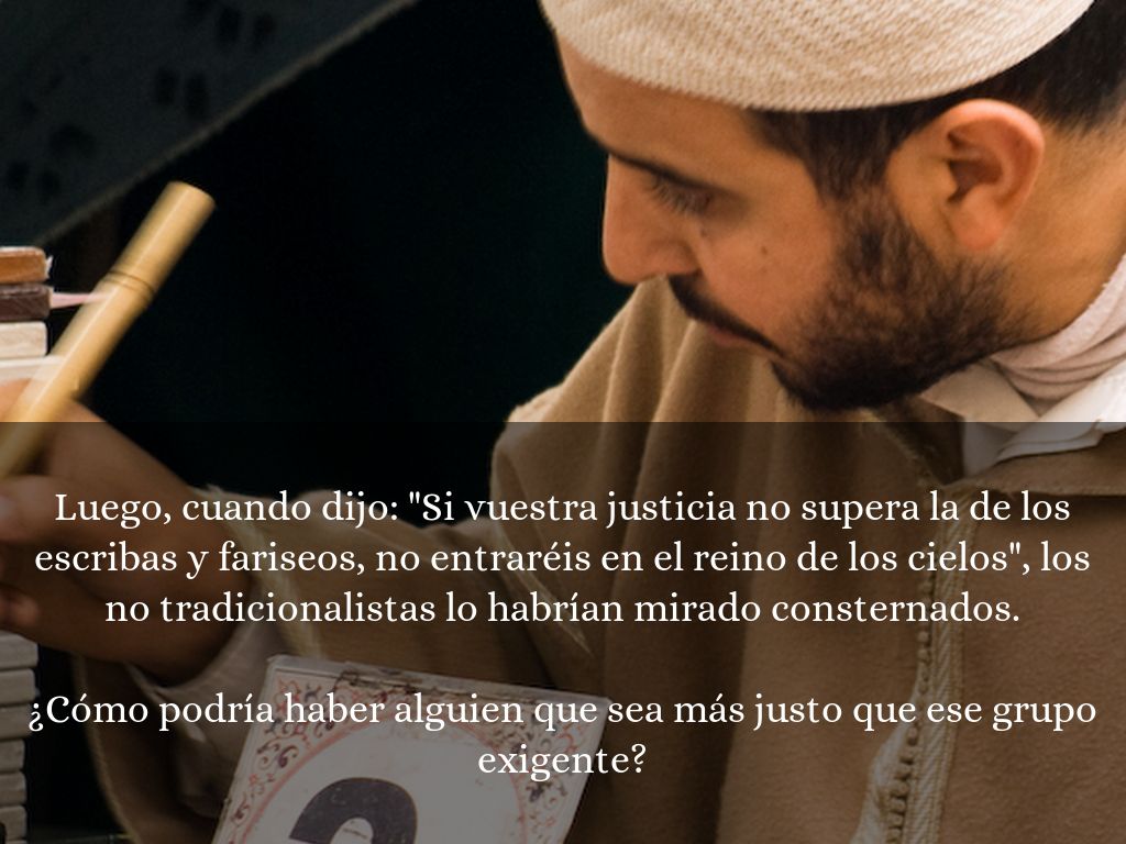 Luego, cuando dijo: "Si vuestra justicia no supera la de los escribas y fariseos, no entraréis en el reino de los cielos", los no tradicionalistas lo habrían mirado consternados.