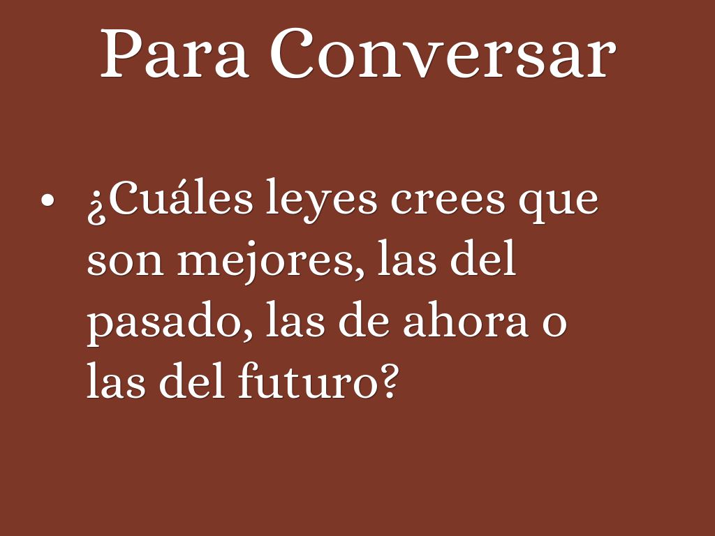 - ¿Cuáles leyes crees que son mejores, las del pasado, las de ahora o las del futuro?