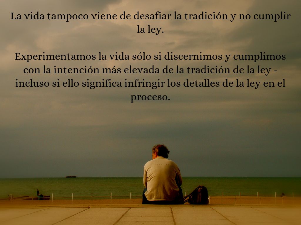 Experimentamos la vida sólo si discernimos y cumplimos con la intención más elevada de la tradición de la ley - incluso si ello significa infringir los detalles de la ley en el proceso.